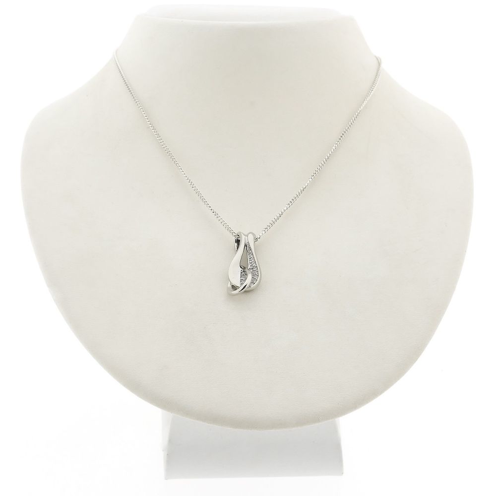 White gold pendant pavé-set with round brilliant-cut zirconia stones. A white gold teardrop-shaped eyelet is set in the openwork section of the pendant. The pendant is crafted from 14-karat white gold (585/1000).
