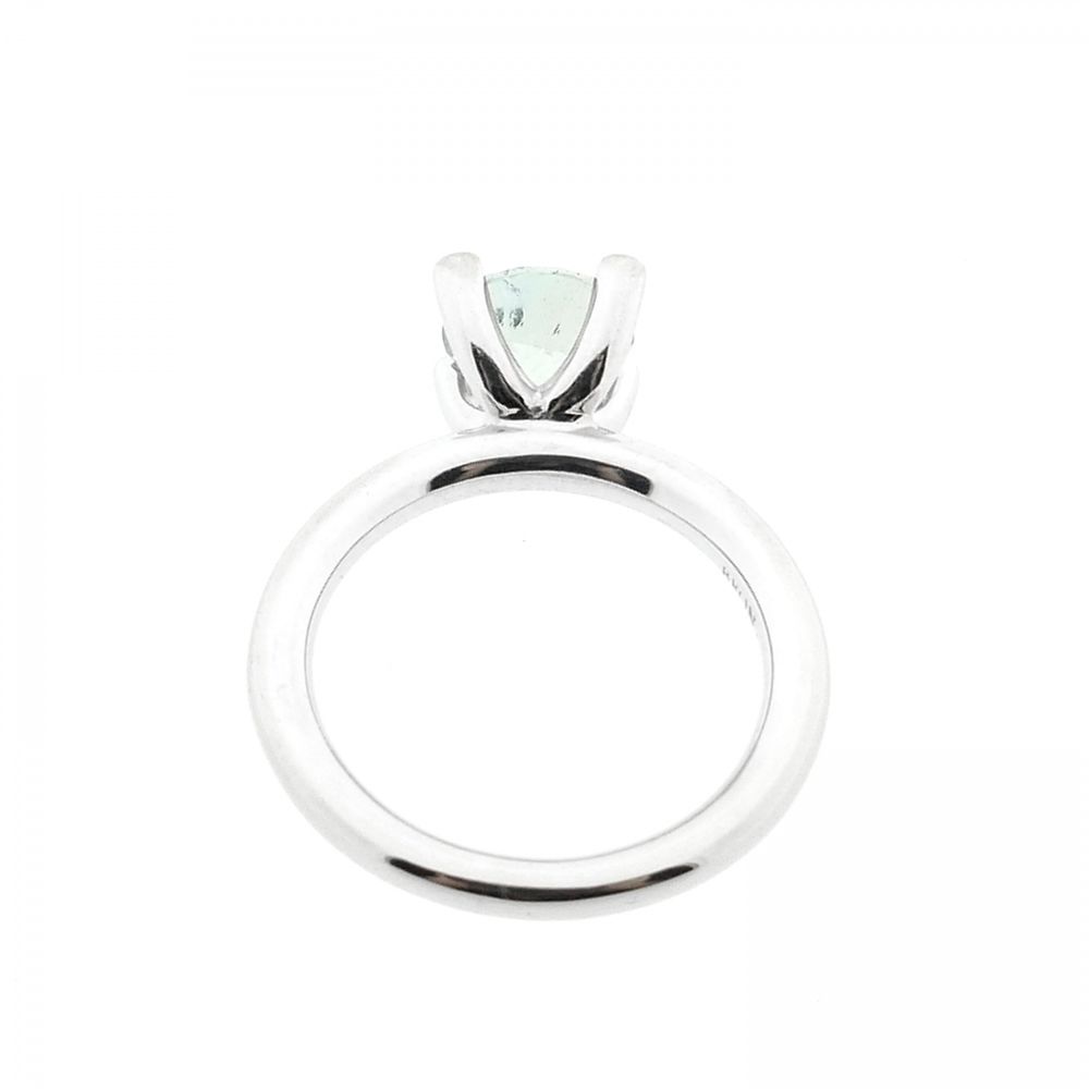 White gold 'Phlox' ring set with aquamarine and diamonds; Bron Jewelry