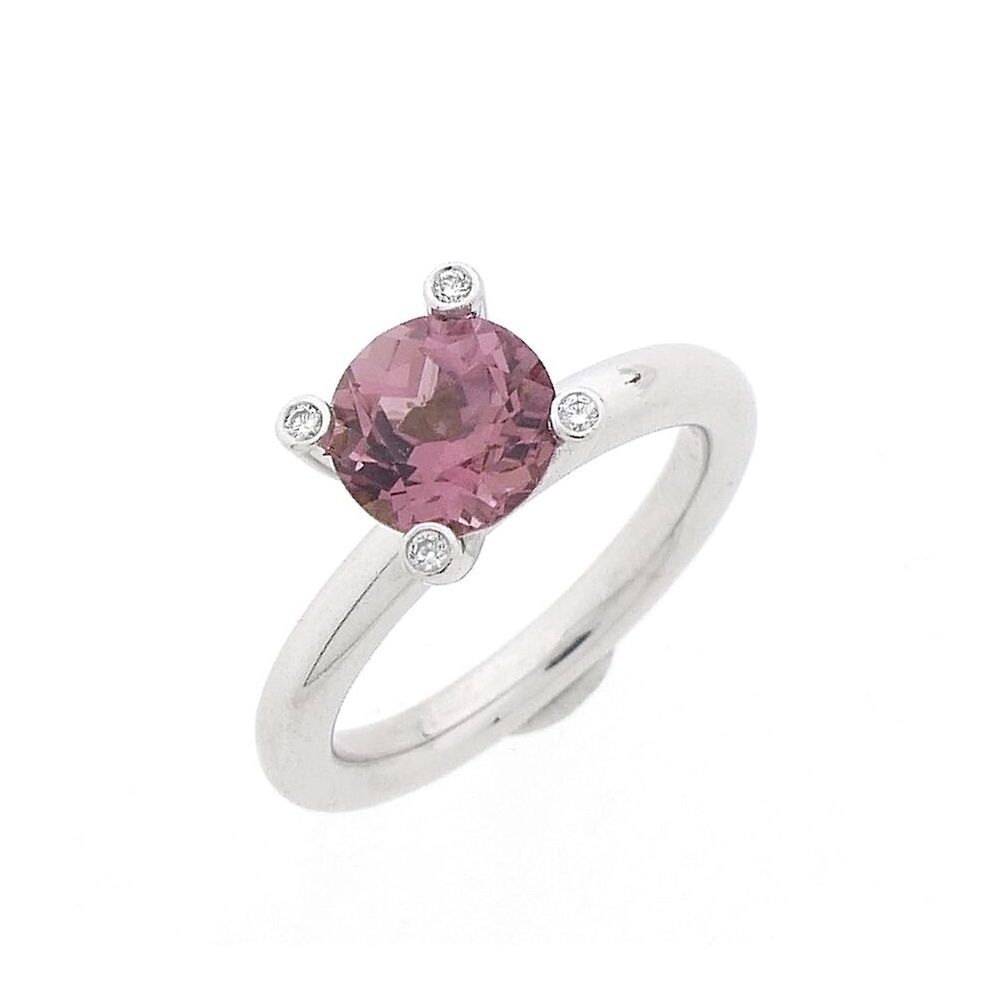 White gold 'Phlox' ring set with pink tourmaline and diamond; 0.04 ct. | Bron Jewelry
