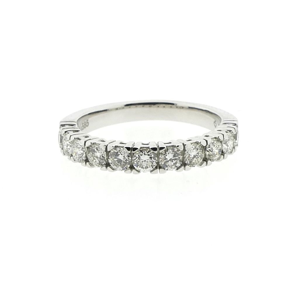 White gold ring set with eleven round brilliant-cut natural diamonds. The diamonds have a total weight of approximately 0.88 ct. This elegant and luxurious ring is crafted from 14-karat white gold (585/1000).