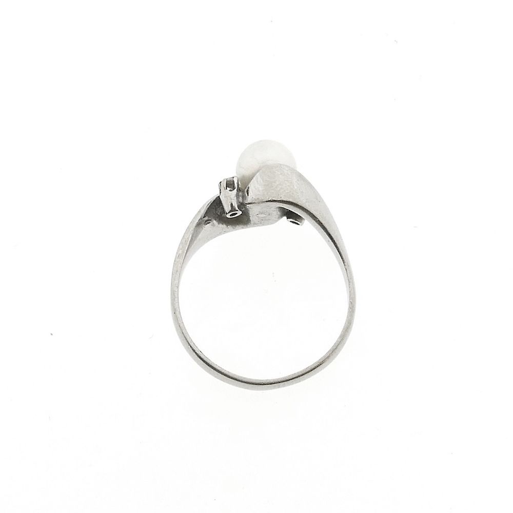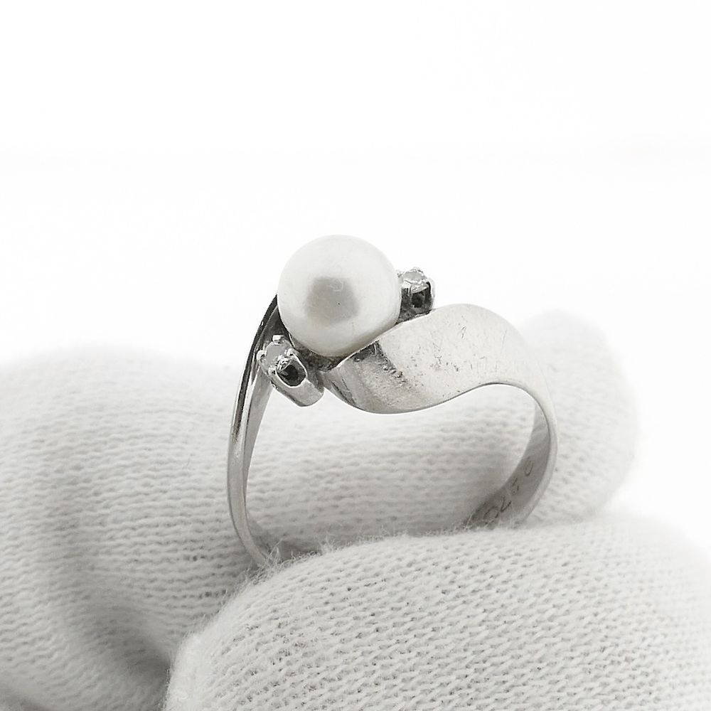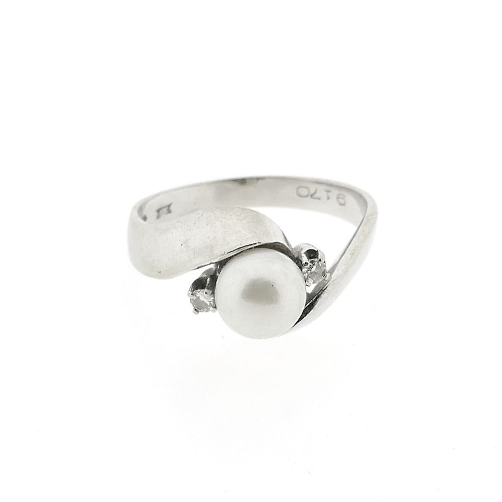 White gold ring set with cultured pearls and diamonds. A beautiful combination of stones with an elegant look. This beautiful women's ring is crafted from 14-karat white gold (585/1000).