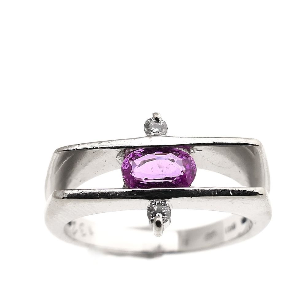 White gold ring with pink sapphire and diamond; 0.06 ct.