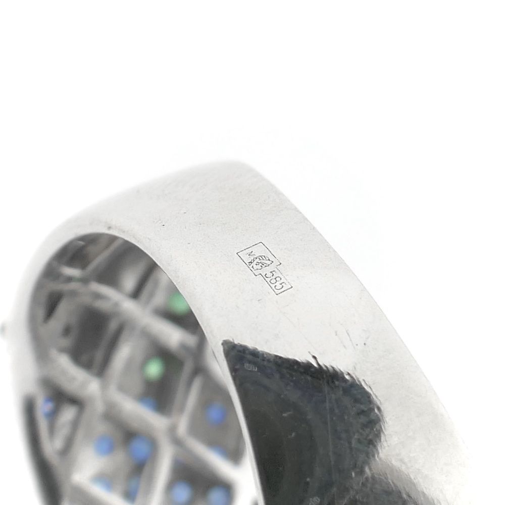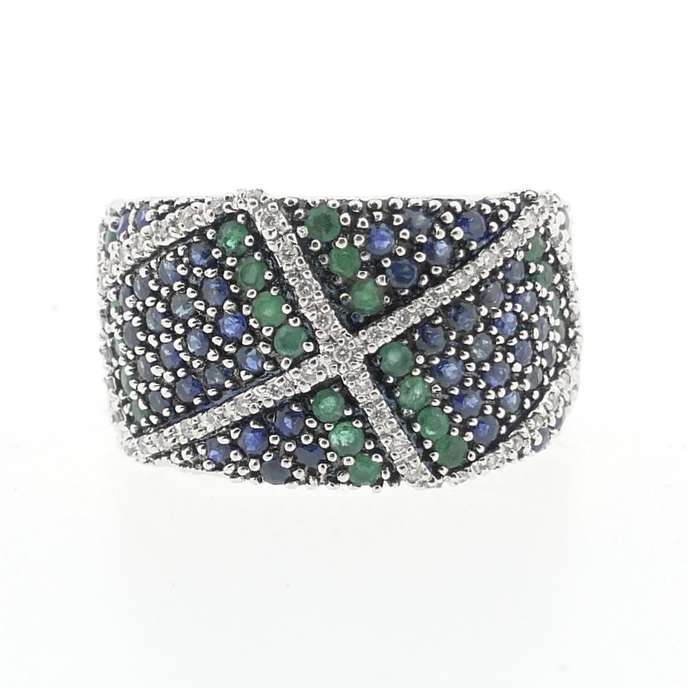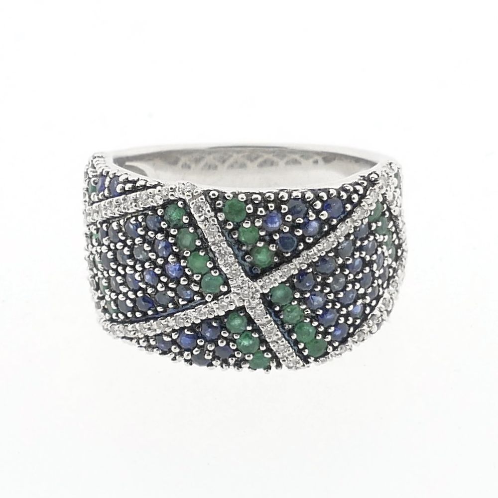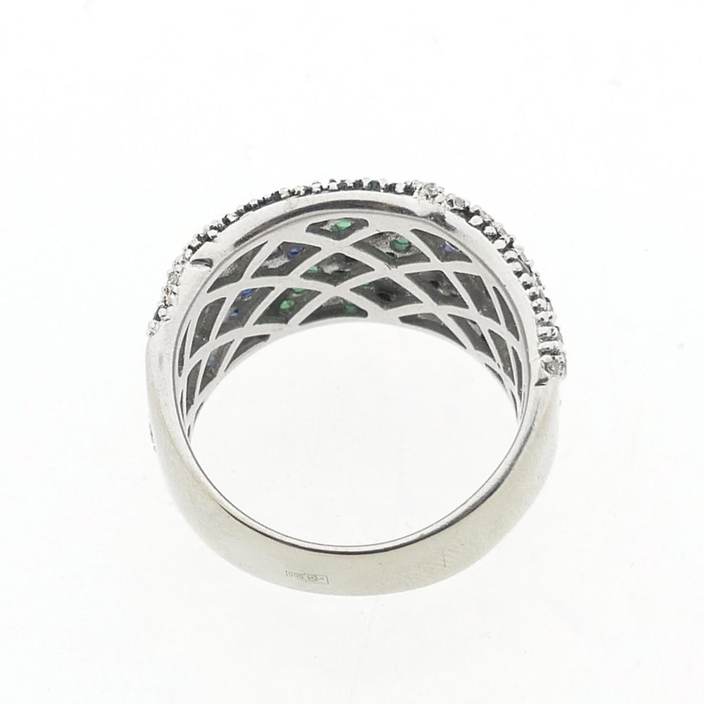 White gold ring with sapphire, emerald and diamonds; Approx. 0.28 ct.