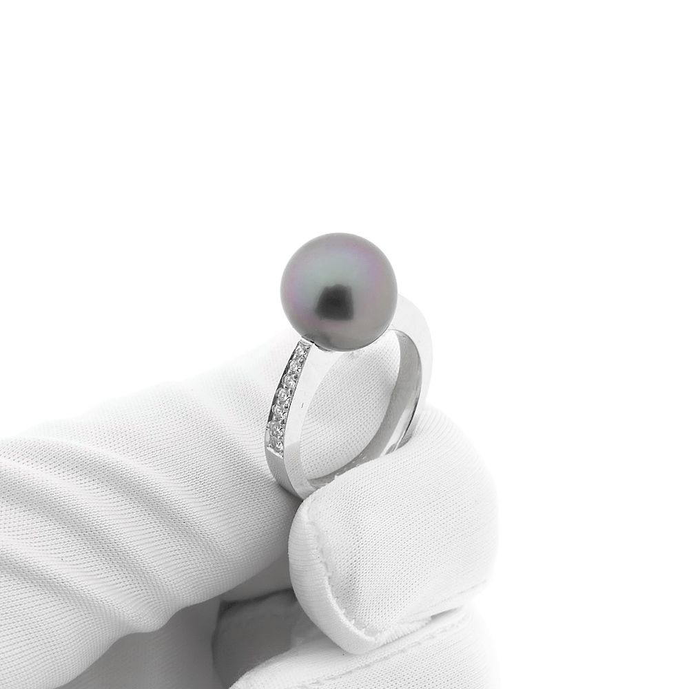 White gold ring with Tahitian pearl and diamond; 0.13 ct.