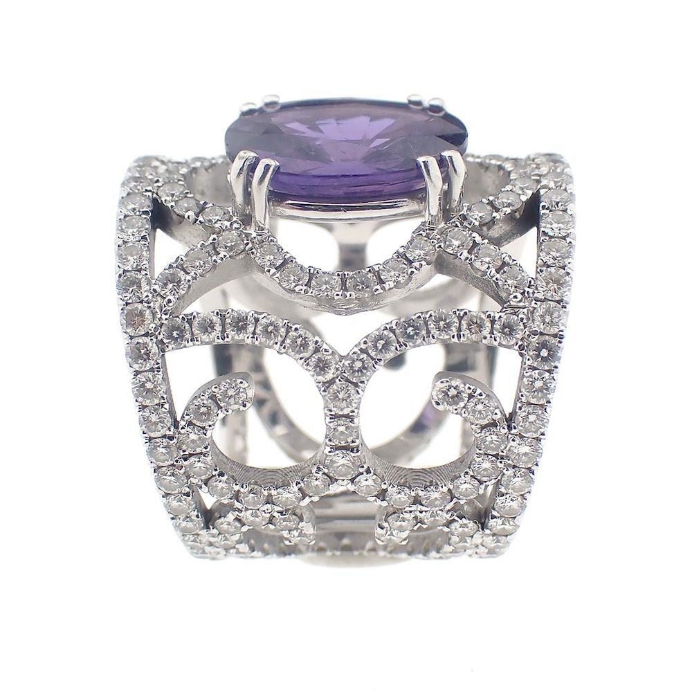 White gold royal ring set with sapphire and diamonds; 3.00 ct.