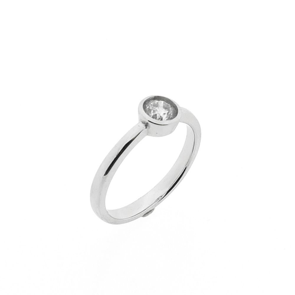 White gold solitaire ring set with a 0.40 ct diamond. The ring has a polished finish and a subtle, modern look, with the diamond being a real eye-catcher. This beautiful ring is crafted from 14-karat white gold (585/1000).