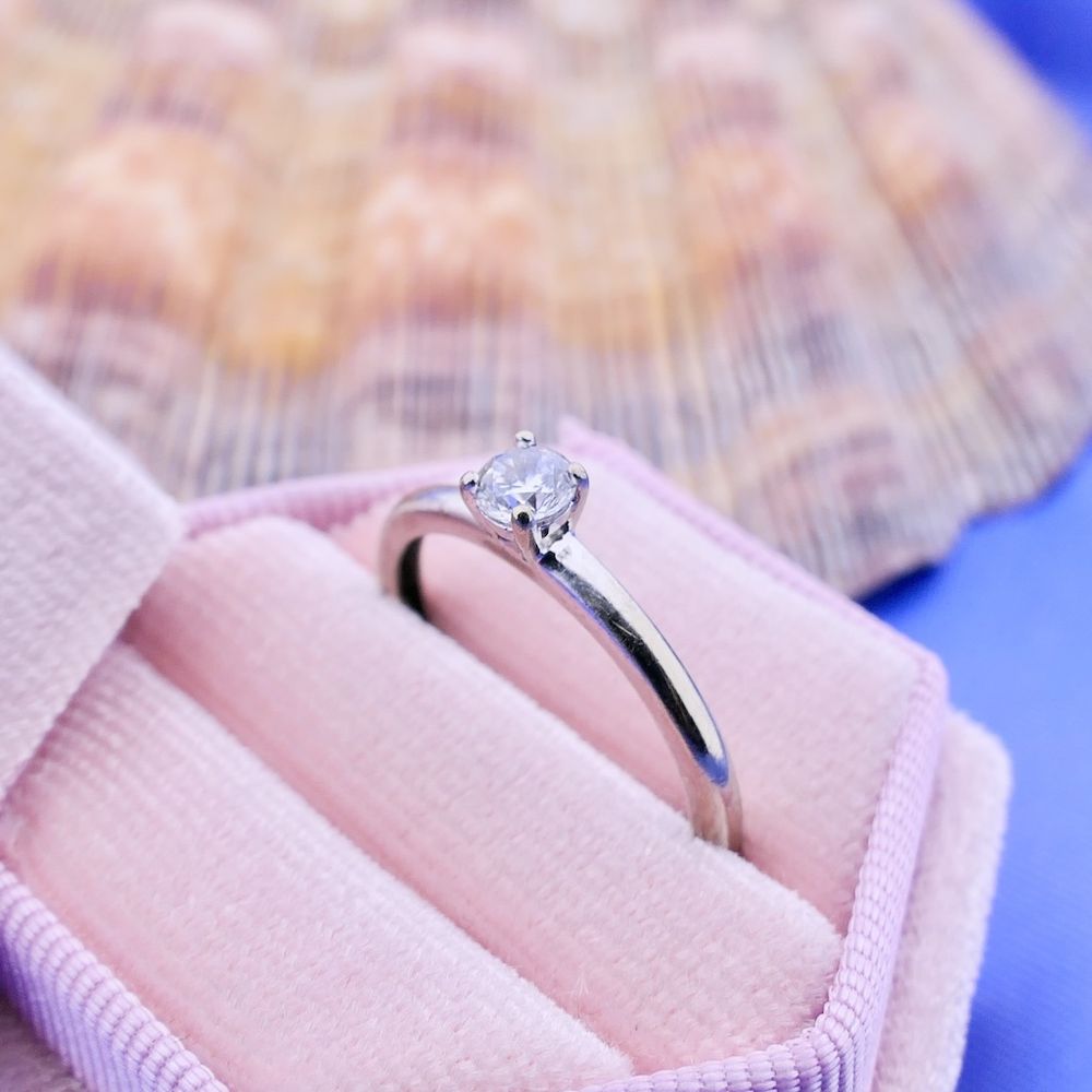 White gold solitaire ring with zirconia; Blush