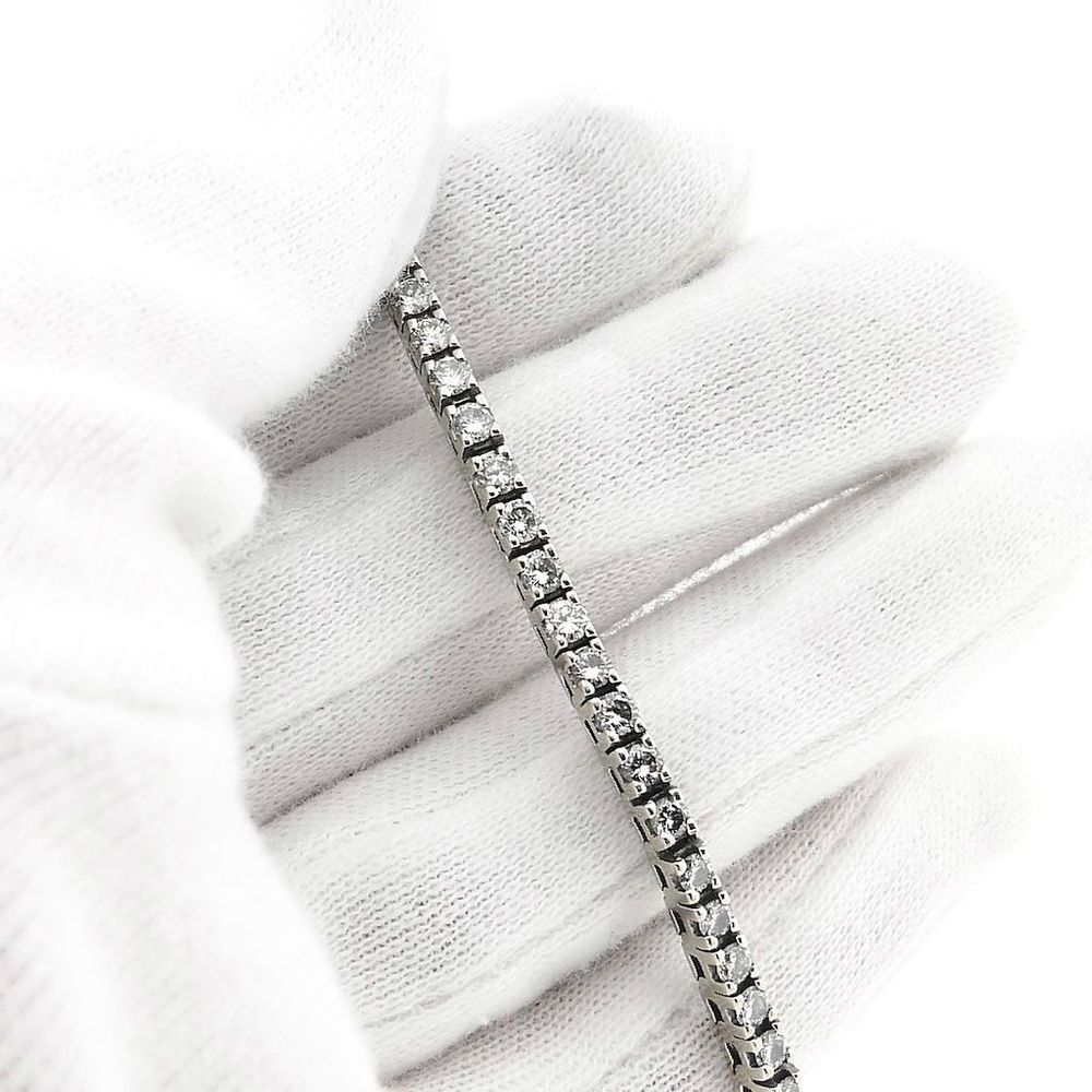 Beautiful white gold tennis bracelet set with several stunning diamonds. The stones have a total weight of 3.64 ct. The bracelet has an elegant and luxurious appearance. It closes with a spring ring clasp and is made of 14 karat white gold (585/1000).
