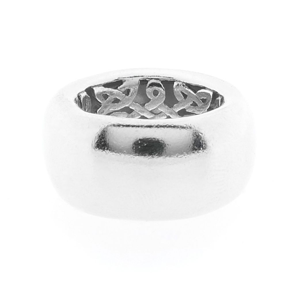 A robust and wide silver ring with a smooth finish. The interior is completely decorated with a Celtic pattern. The ring is made of premium silver (925/1000).