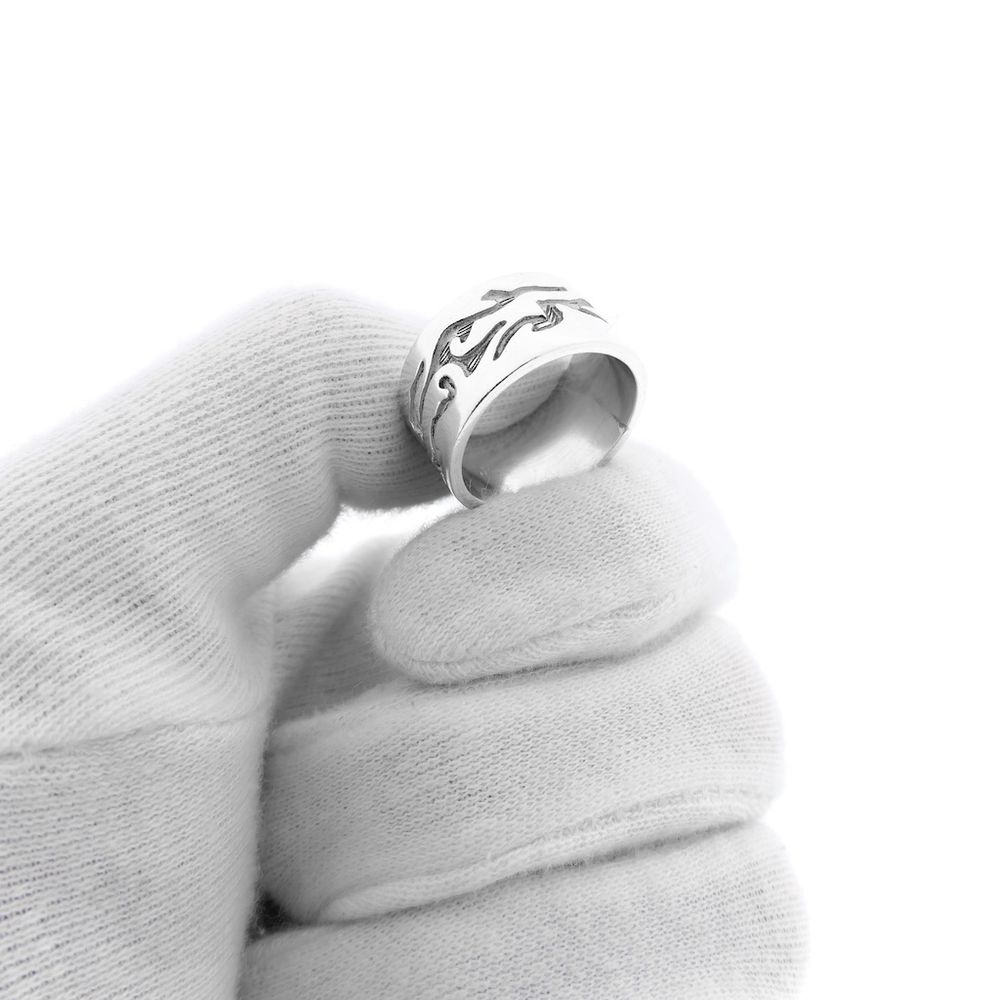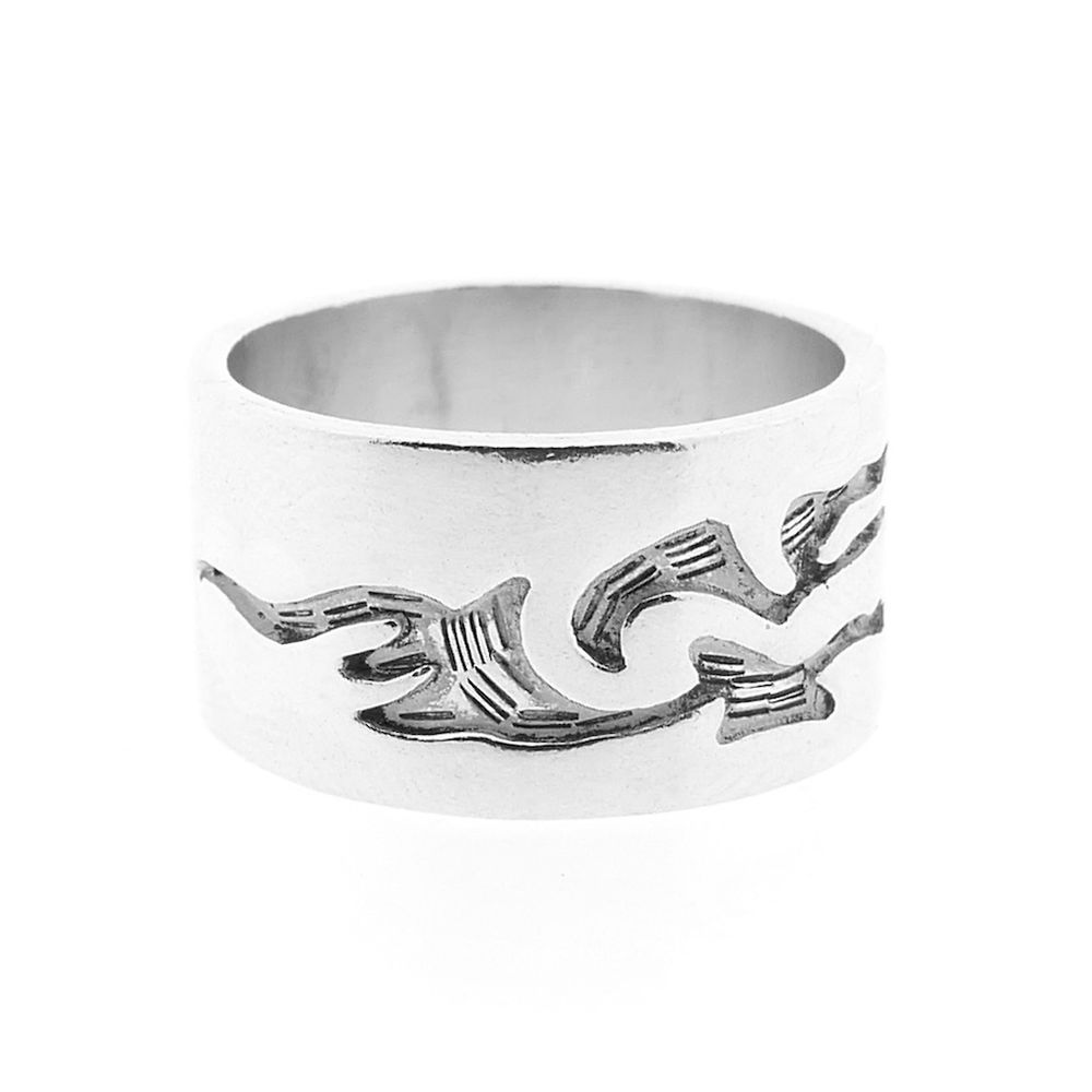 Wide silver ring with tribal