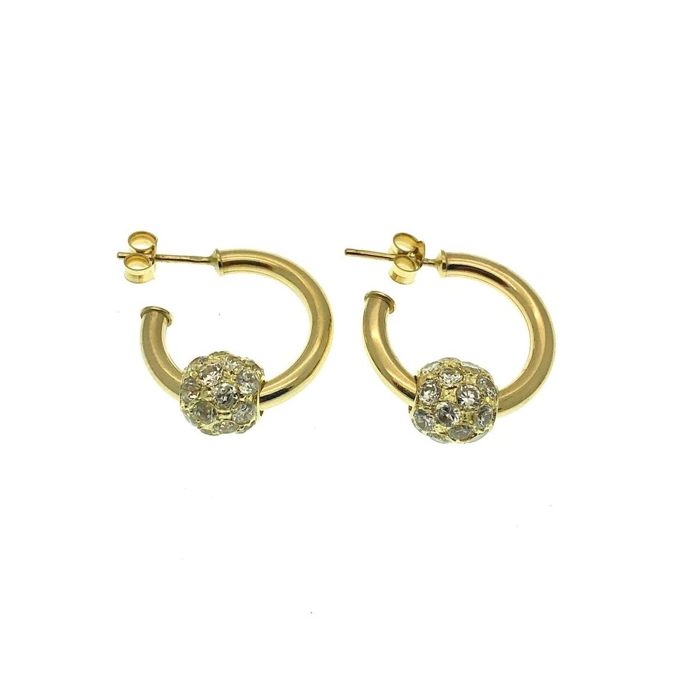 Yellow gold earrings with zirconia charm | Ø 20 mm